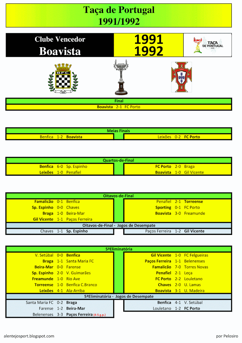 Histórico (Futebol) - Resultados da Taça de Portugal - Época 1991/92