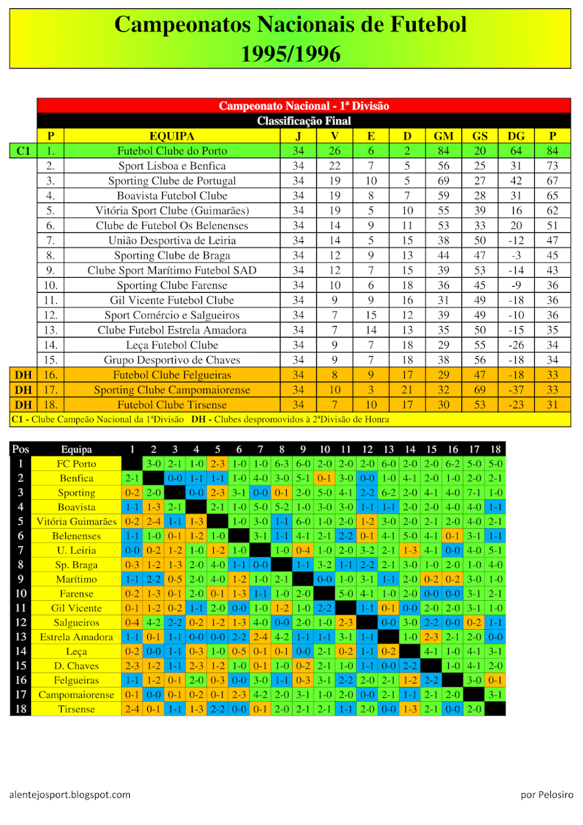 Histórico (Futebol) - Classificações e Resultados dos Campeonatos Nacionais - Época 1995/96
